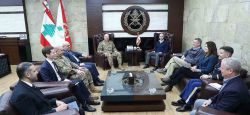 Le commandant en chef de l’armée, le général Joseph Aoun, a reçu vendredi, à Yarzé, une délégation d'assistants aux membres du Congrès américain des partis démocrate et républicain, en présence de l’ambassadrice des États-Unis au Liban, Dorothy Shea. Ont été évoqués les défis auxquels fait face l’armée libanaise à la ...